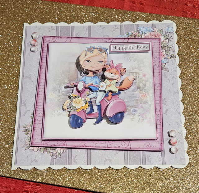 Pink Scooter Decoupaged Birthday Card With Matching Envelope